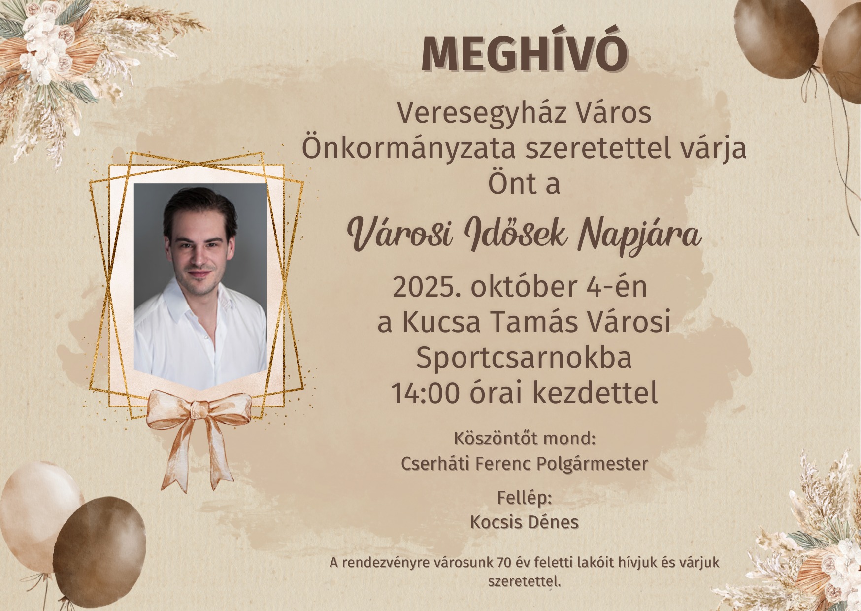 Az ünnepi eseményen Cserháti Ferenc polgármester mond köszöntőt, a kulturális program keretében pedig Kocsis Dénes fellépésére kerül sor. A rendezvényre az önkormányzat a város 70 év feletti lakóit hívja meg.